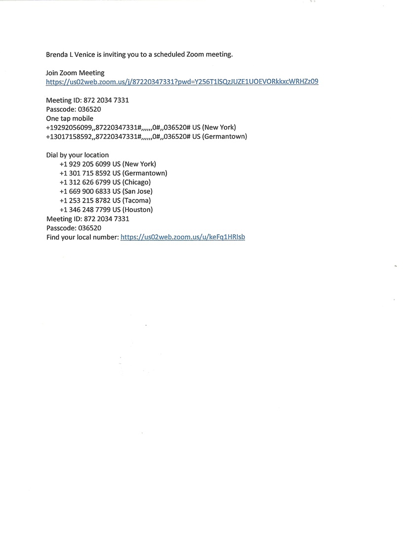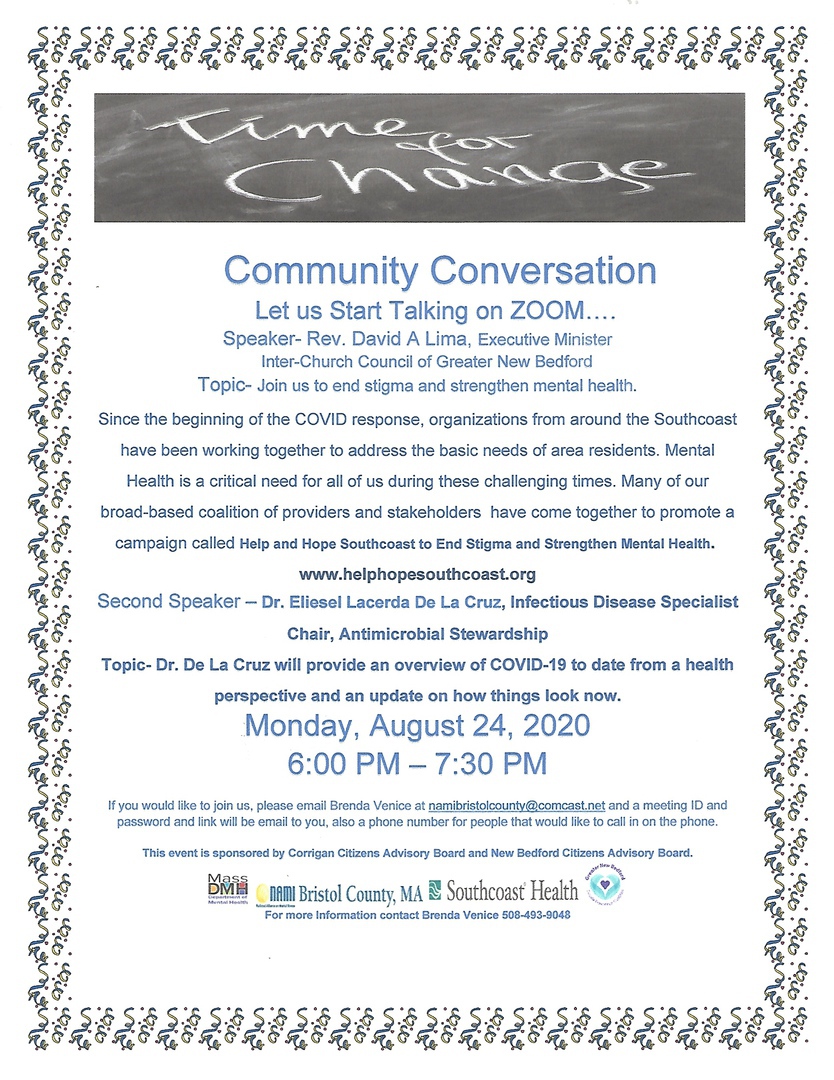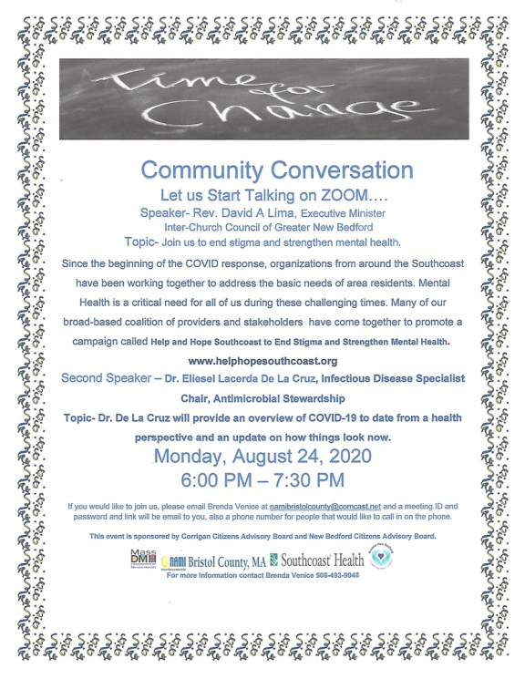 The Link information for the Community Conversation on Zoom for August 24,2020