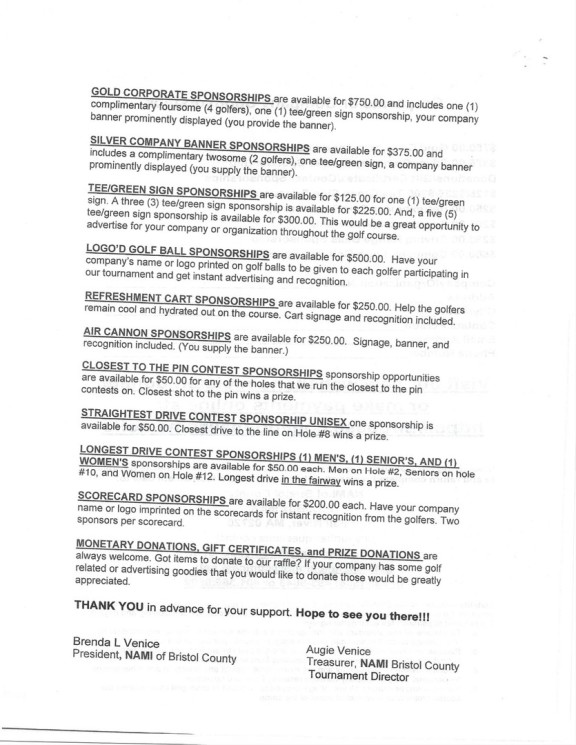 The Annual NAMI of Bristol County Charity Golf Tournament