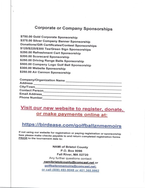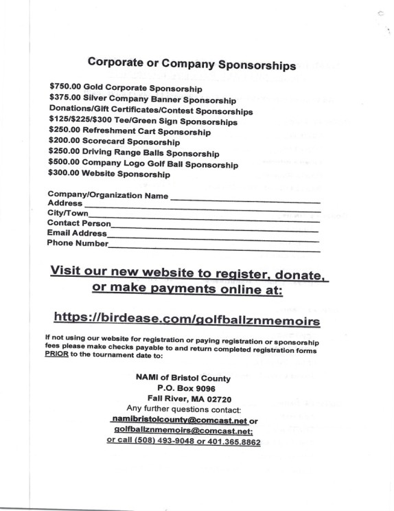 For more information namibristolcounty@comcast.net or golfballkoleckter@comcast.net or by calling 508-678-2584