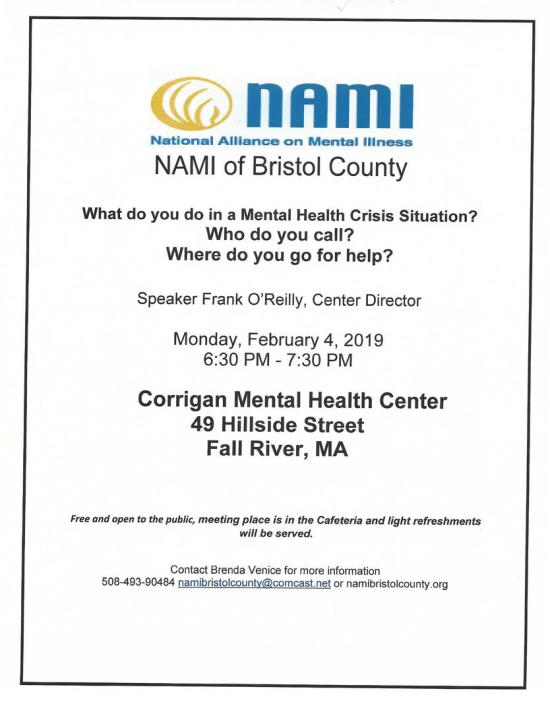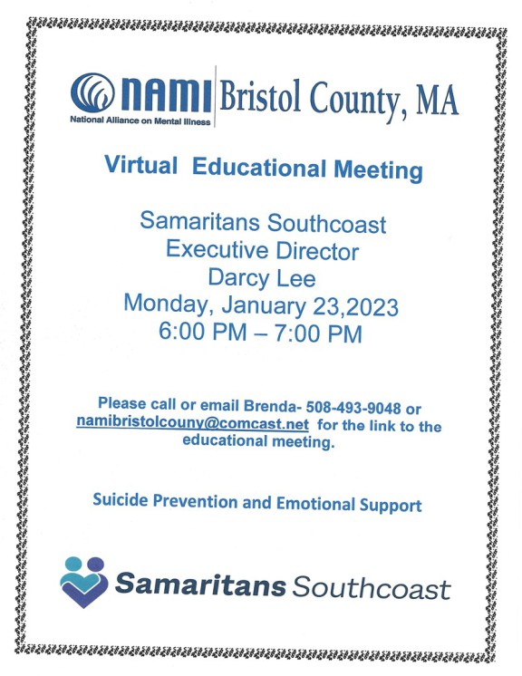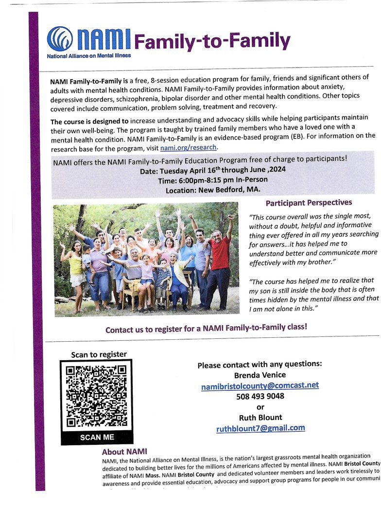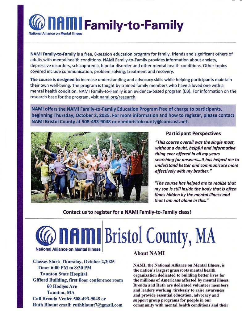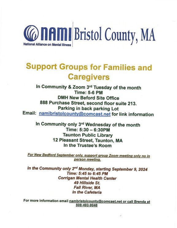 Please sign up now by email namibristolcounty@comcast.net or call Brenda at 508-493-9048