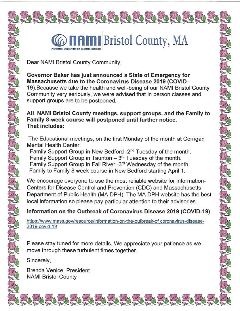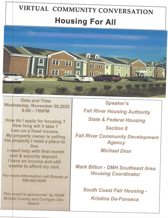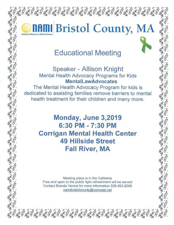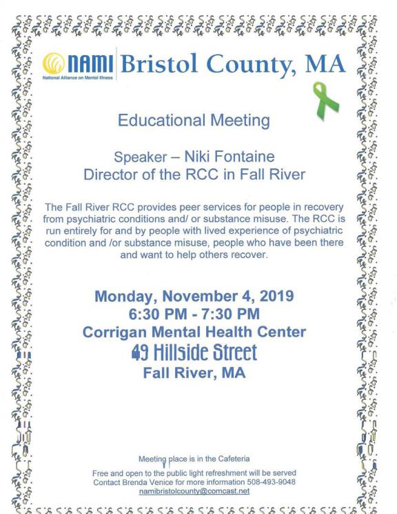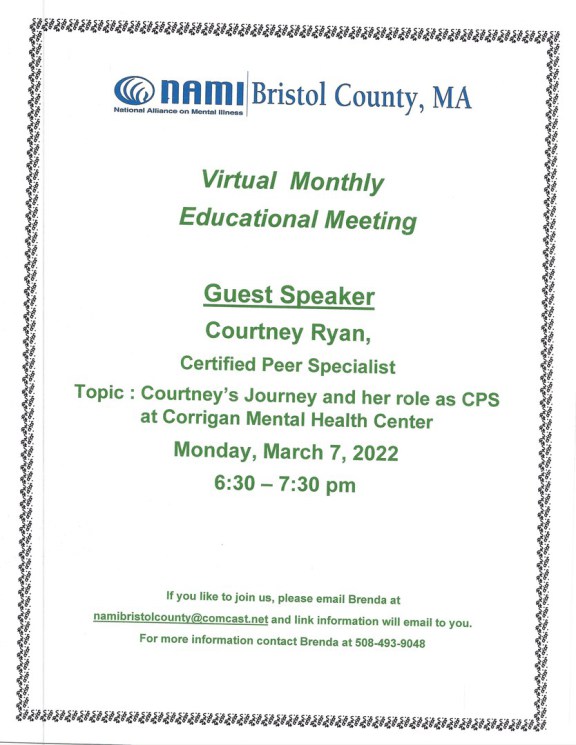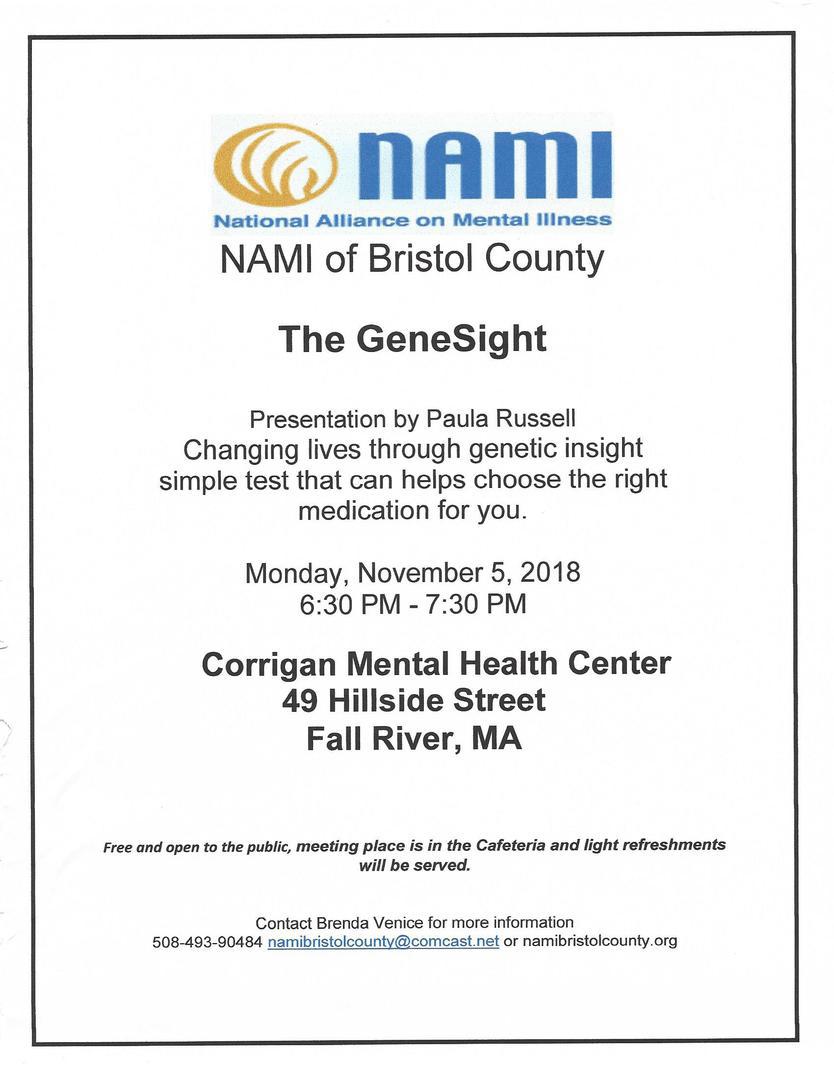 Please sign up now by email namibristolcounty@comcast.net or call Brenda at 508-493-9048