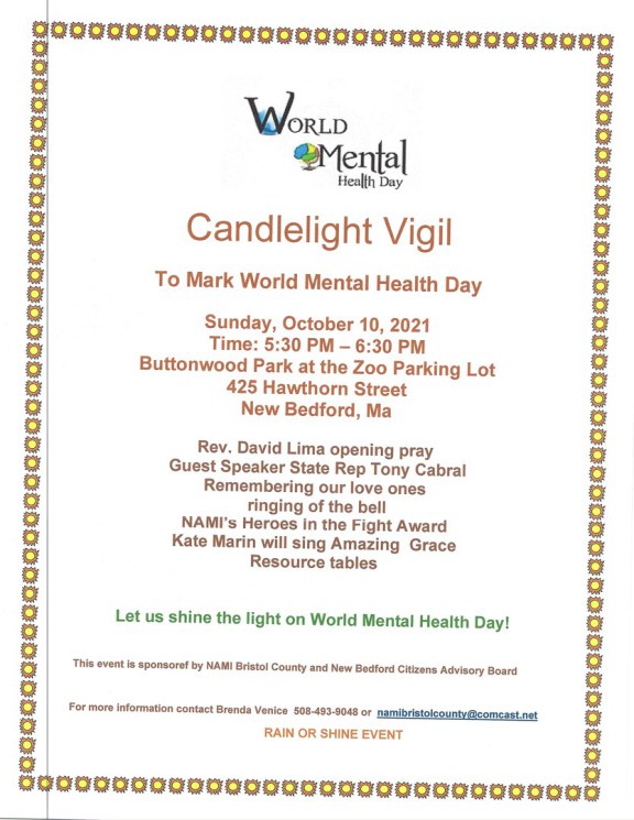 Due to the rain and wind the event for Thursday Candlelight Vigil October 10 the location as changed to 888 Purchase Street.